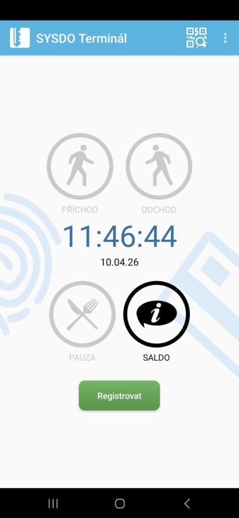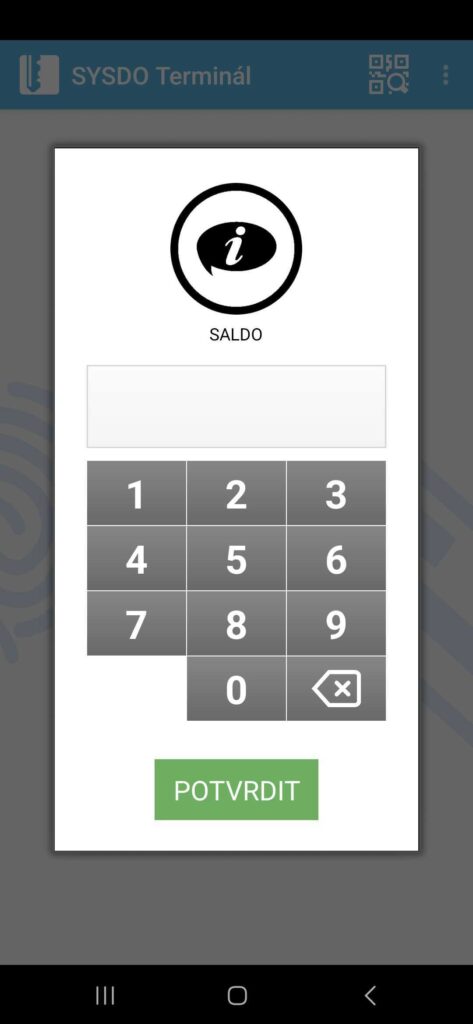 Aplikaci v telefonu je nutné spárovat se čtečkou v systému SYSDO buď pomocí QR kódu nebo ručně pomocí vložení jedinečného kódu.