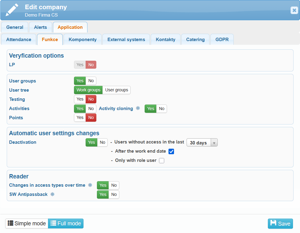 In the GDPR tab, you can set the User anonymization. This means all personal and contact details, GPS locations, access photos, card numbers, fingerprints, facial data, and passwords will be deleted for the user. The anonymization period is calculated from the user’s departure date.