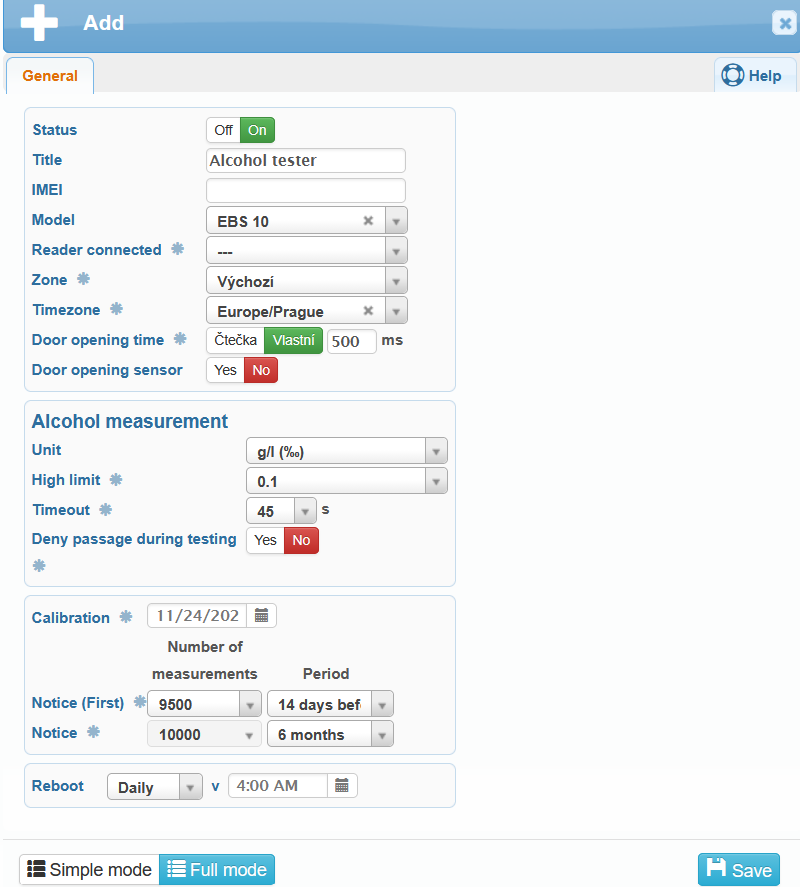 It is possible to configure user notifications for high alcohol levels and sensor calibration (Administration – Users – edit user – Alerts).