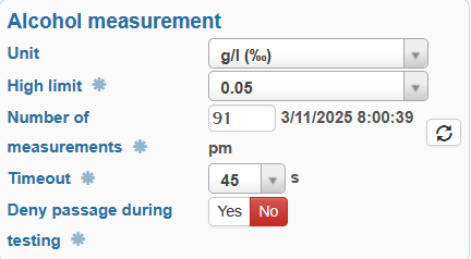 Alcohol Testing contains the testing rules. Two default rules are created in the company. You can adjust them as needed and assign users and reader areas.