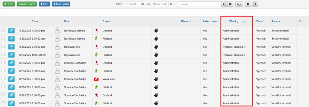 ) – you can change the access type (e.g., from departure to arrival) or invalidate the access type. Invalid access will not be counted towards attendance.