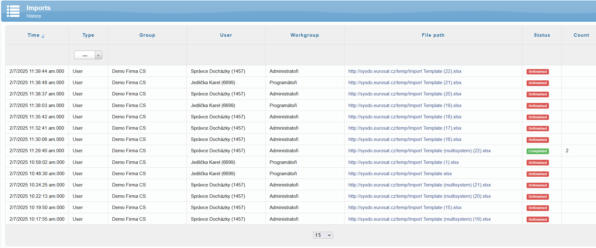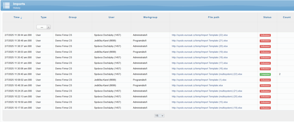 After activation, a new menu item Imports will appear in Administration. After clicking on this item, three buttons will appear: