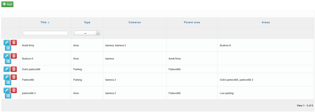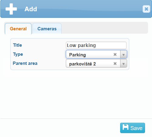 You can add parking areas to the system using the icon Add in the upper-left corner of the screen.