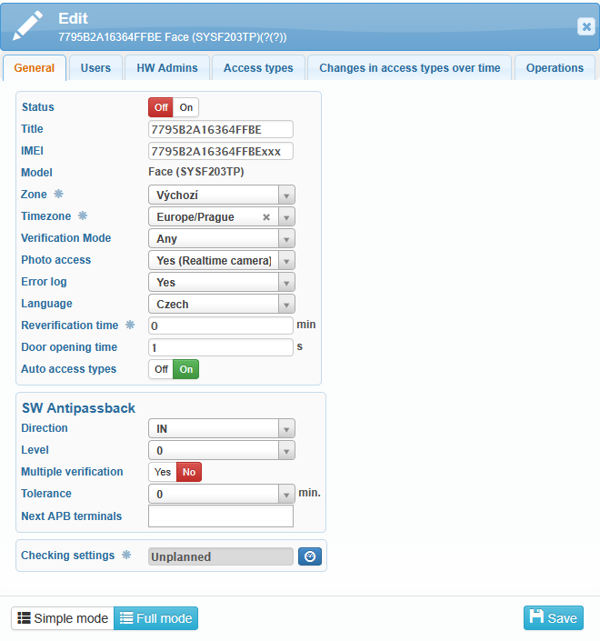 Reverification time – the period during which a user can verify again without sending another event to the server. Reader menu → Settings → Log → Verification time (min). Default value = 0 s.