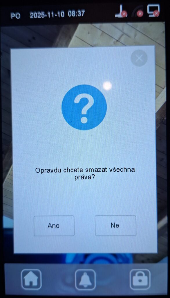 6. Select Yes to perform the administrator permission reset. After confirmation, the administrator permissions will be restored to their default state, and access to the main menu will once again be available without restrictions.