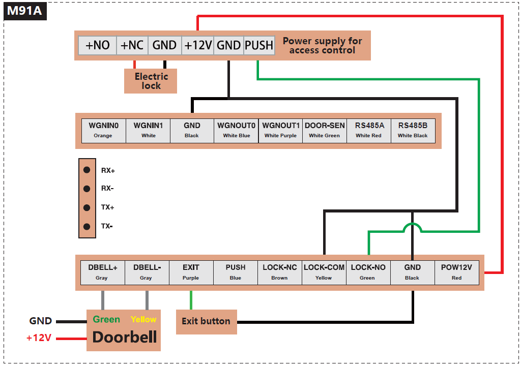 “Door Unlock Time” – 0–255 seconds; the relay activation time.