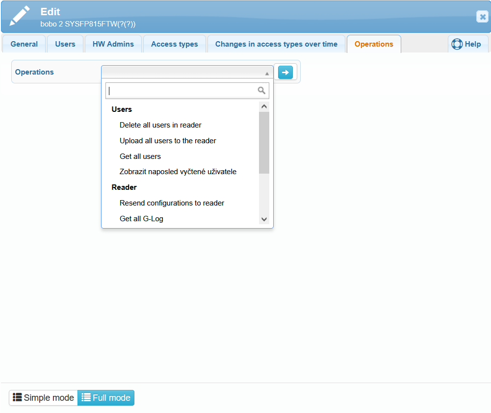 Upload all users to the reader – this operation uploads all users stored in the system into the reader.