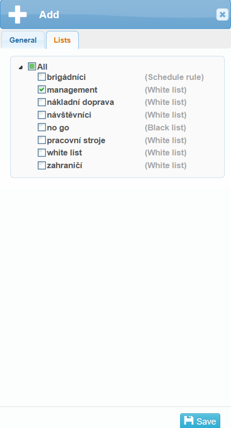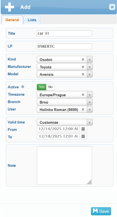 In the second tab, Lists, you can select which list you want to add the vehicle to.