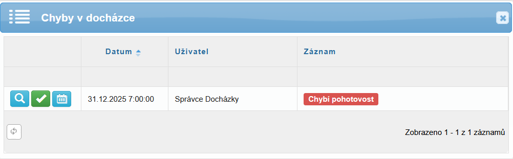 K chybě docházky „Chybí pohotovost“ dochází tedy v případě, že: