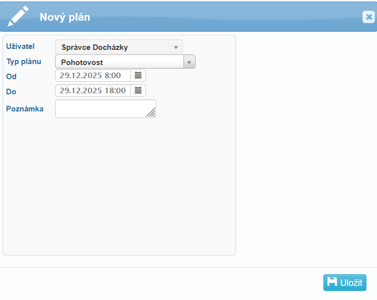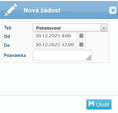 Pohotovost lze vkládat do plánů docházky, událostí i žádostí.