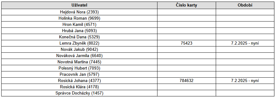 - Nezadáno – zobrazuje pouze uživatele, kteří nemají zadán příchod/odchod