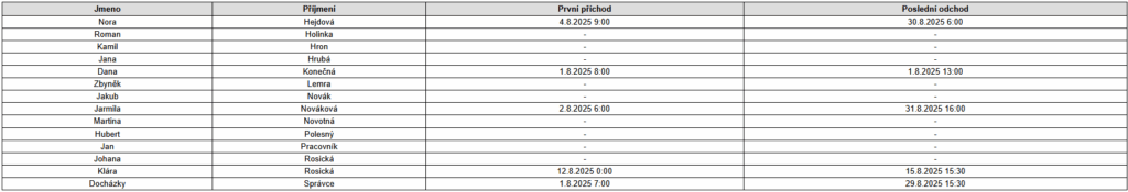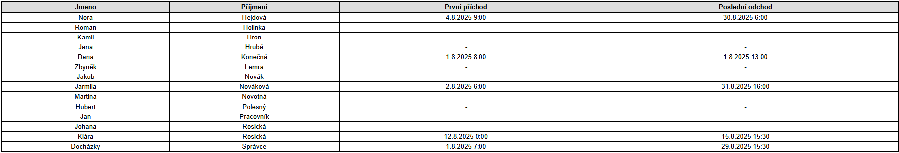 - Nezadáno – zobrazuje pouze uživatele, kteří nemají zadán příchod/odchod
