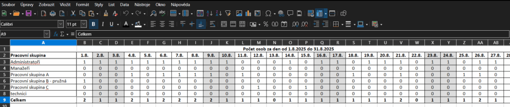Uživatelé – uživatelé, pro které chcete report generovat, rozděleni podle pracovních skupin.