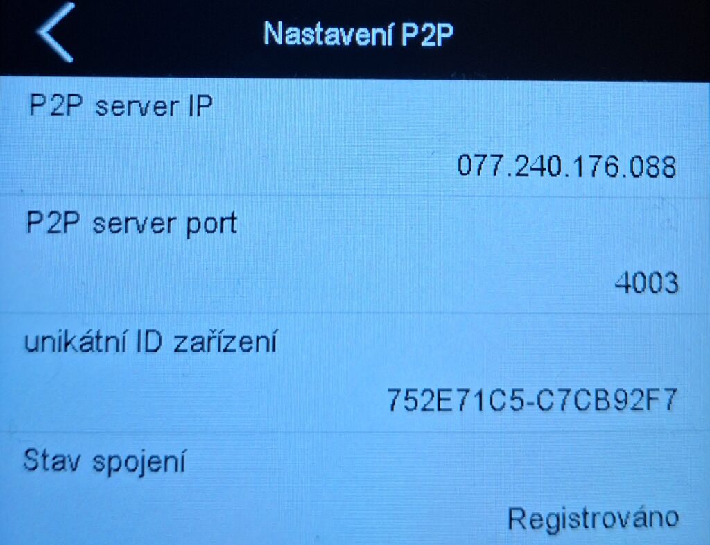 unikátní ID zařízení naleznete v Menu čtečky – Nastavení – Komunikace – Nastavení P2P
