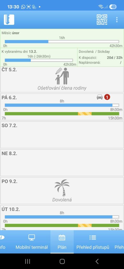 Dalším způsobem, jak zadávat své přístupy, je s pomocí mobilní aplikace SYSDO. Najdete zde plán směn, přehled přístupů i přehled přítomnosti zaměstnanců.